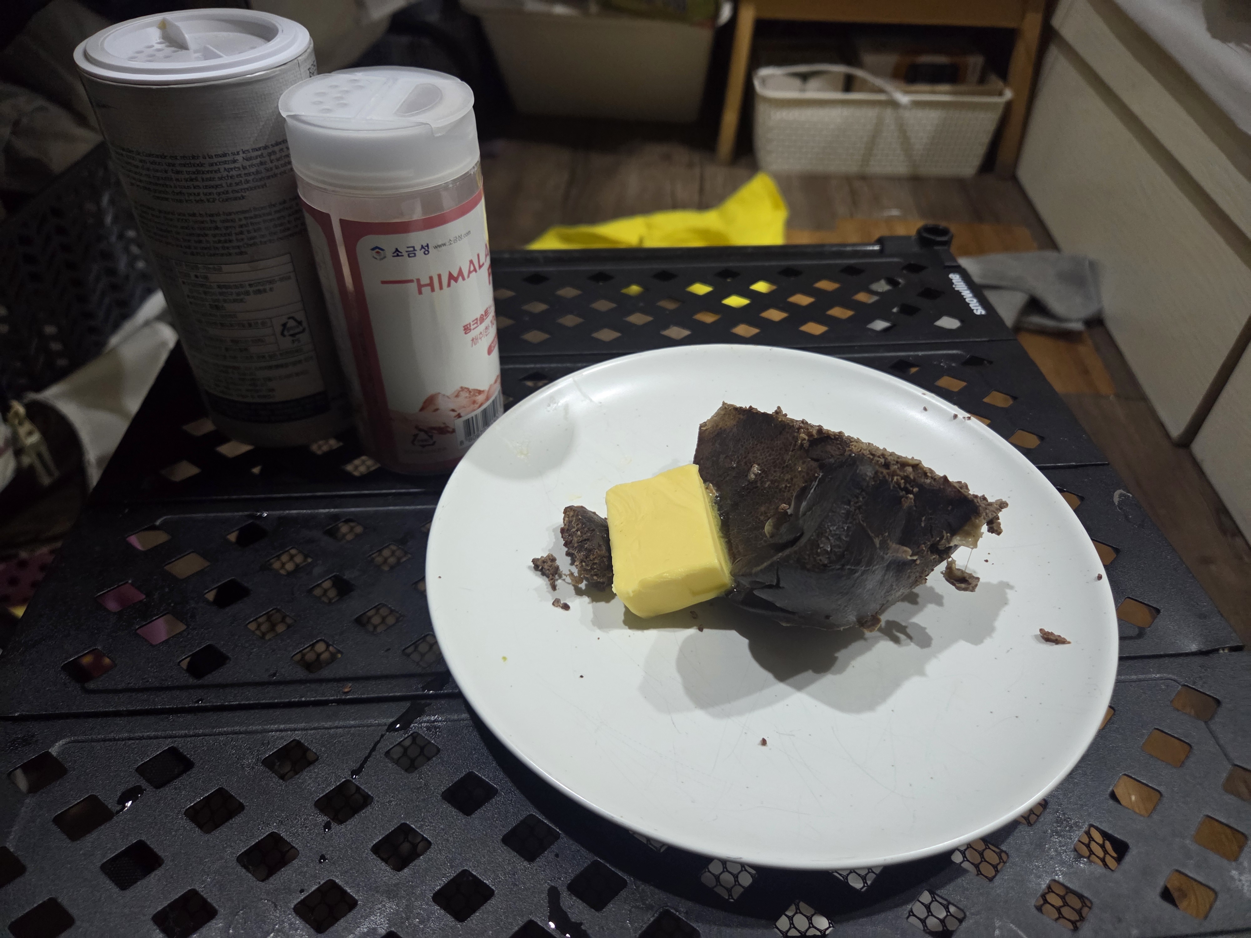 돼지간을 전자레인지에 10분 돌리고, 한 덩이만 따로 5분 더 돌렸다. 양커버터와 함께 점심 겸 먹어주었다. 순대와 함께 먹는 간이 일품인데 뭐 간만 막어도 맛있다!